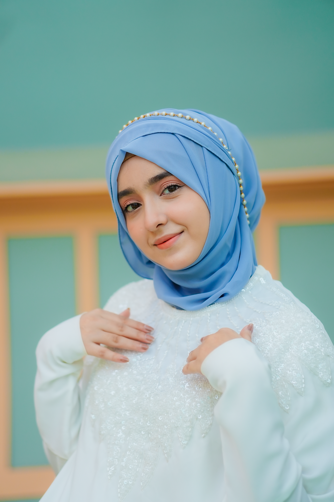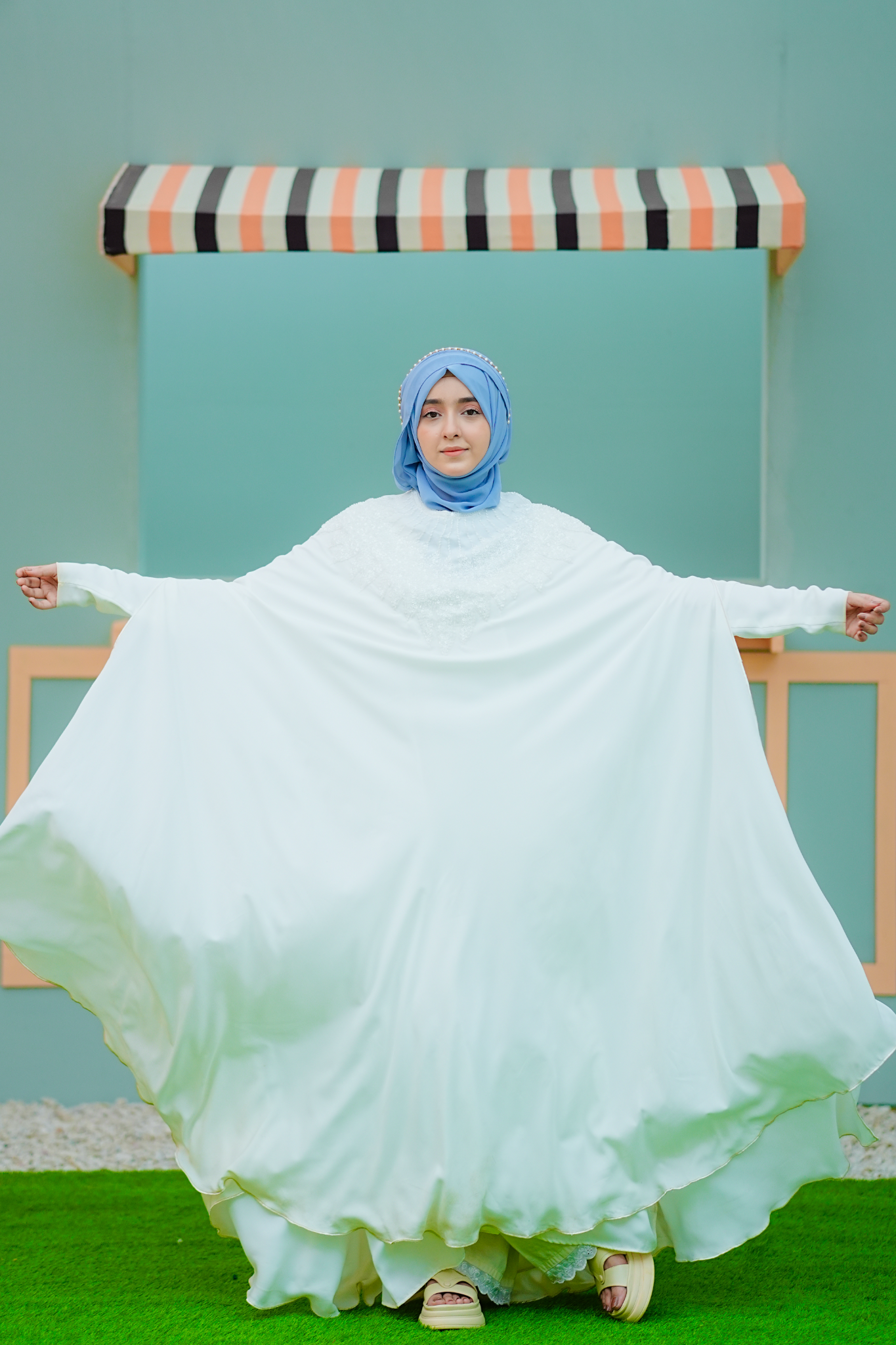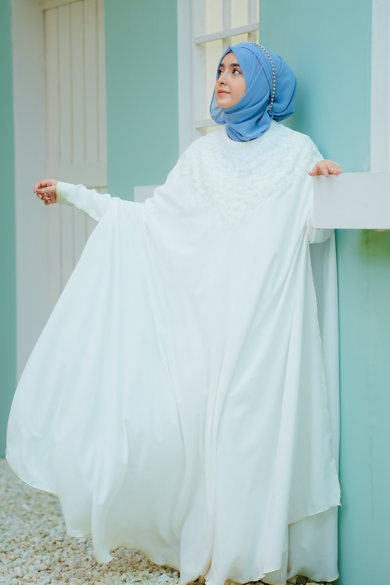• It is a two piece abaya that comes with a SKY blue color Stoller.