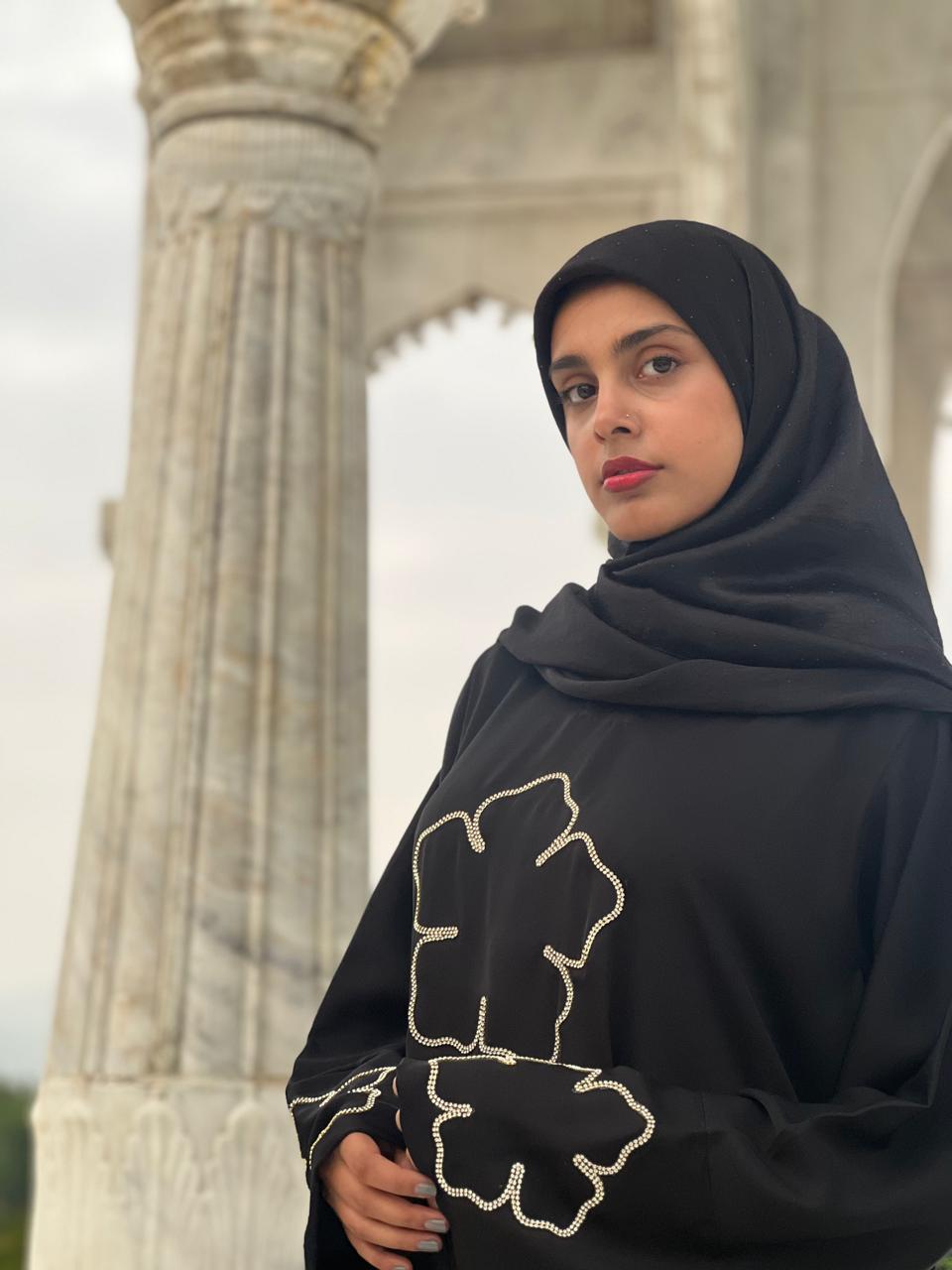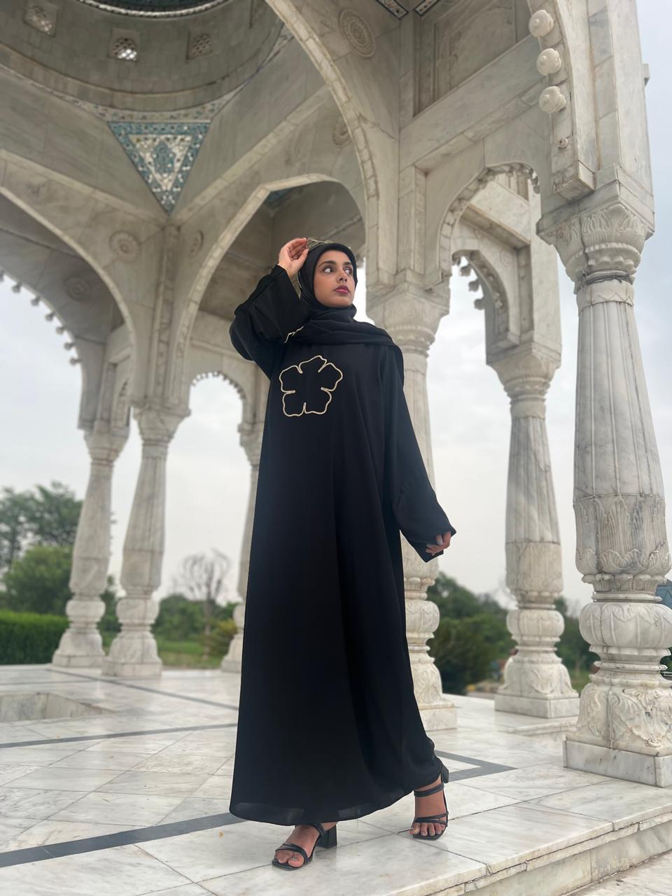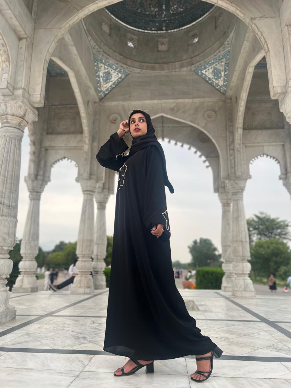 Hand embroidery neck work in front of Abaya.